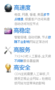 CDN云主机是请填写您网站的中文名称最新推出的支持CDN加速的主机产品,主要支持云计算、云存储、云加速、云建站和云管理等功能。 CDN云主机优势说明 高速度:自动在电信、网通、移动、美国、香港等地机房建立镜像缓存服务器,根据访问客户来源,自动访问距离客户最快速服务器,镜像节点与数据中心之间采用BGP高速线路传输,不论客户端是什么网络,均可以全网高速访问。 高稳定:分布式集群架构,避免单点故障,在线率99.999% 。CDN镜像节点智能容错功能,自动切换到备用节点,即使某个或者多个节点死机或机房被封,也毫不影响! 高服务:CDN主机需要人工审核,只接受正规企业网站,杜绝垃圾网站对您带来的影响; 专用服务器,不与普通网站放在一起。专业团队,优先人工服务。个人用户请选择我司其他产品。 高安全:所有机房均采用正规电信机房,所有数据均支持在线备份,即使原硬盘损坏,也可以比较容易找回网站数据。 CDN云主机与传统虚拟主机功能对比 传统的虚拟主机都是单台服务器,一旦机器硬件损坏、IP被封、机房网络故障等,都将导致网站不能访问,严重的情况数据还无法及时取回,即使想换一家服务商也因为没有数据而无能为力。同时传统虚拟主机还存在跨网访问慢的问题,网通用户访问电信服务器速度慢等等... |